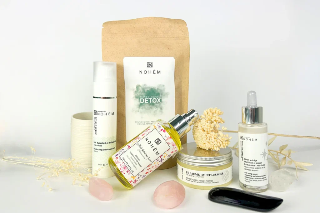 Nohèm sélectionne des ingrédients naturels (99% à 100% du total des ingrédients), biologiques (10% à 74% du total des ingrédients) et issus du commerce équitable.