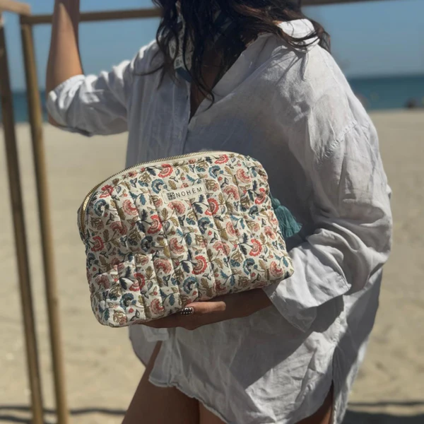 Craquez pour cette grande trousse en coton certifié GOTS (30 x 20 cm), un accessoire à la fois pratique, élégant et écoresponsable. Son imprimé floral aux inspirations indiennes apporte une touche poétique et bohème, idéale pour ajouter du charme à votre vanity, sac ou sac de voyage. Le pompon bleu souligne son allure unique et irrésistible.